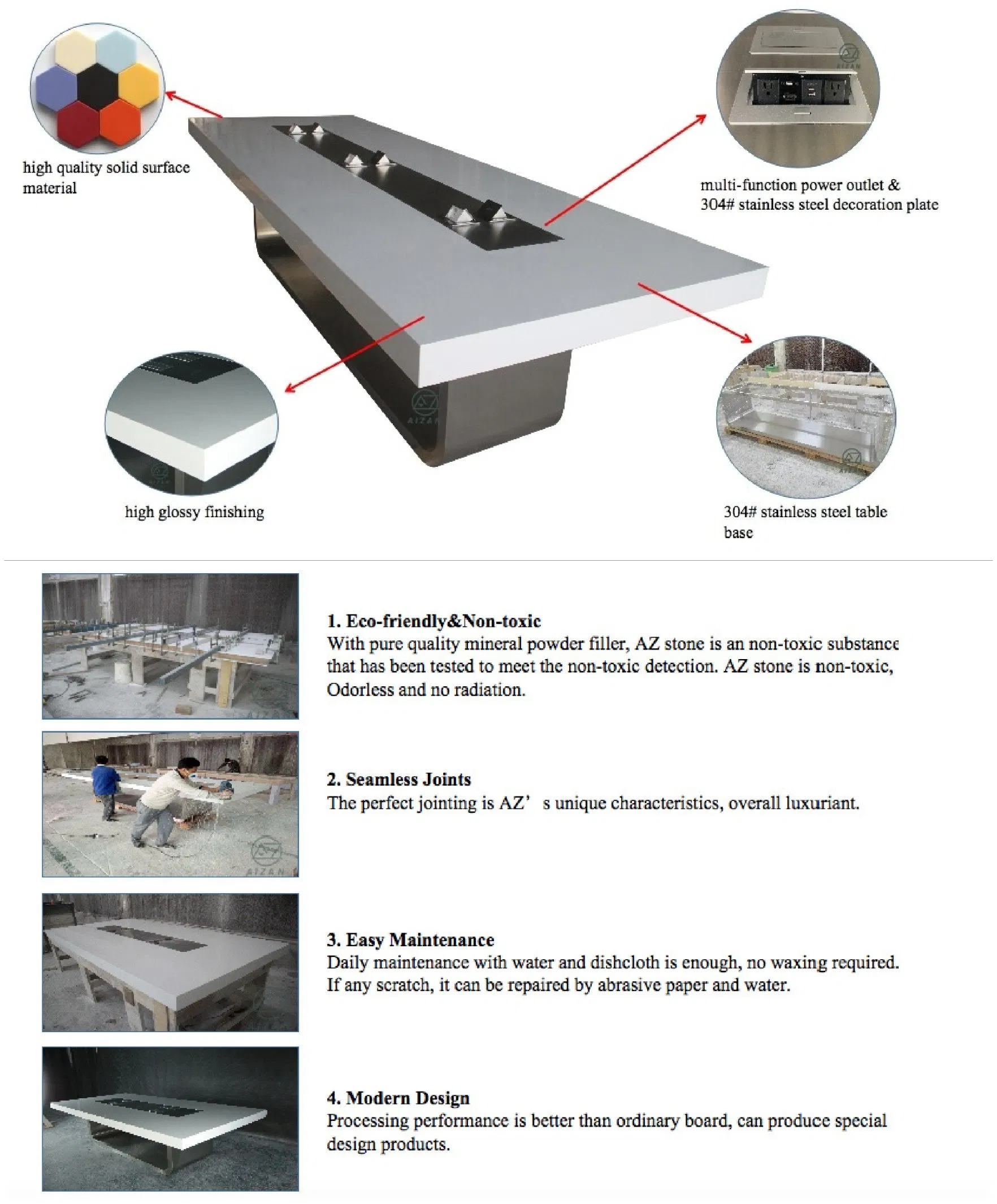 We have been in artificial stone custom furniture field for more than 10 years. Our products feature plywood/steel frames inside, covered by high-quality artificial stone, all handmade by our experienced workers.